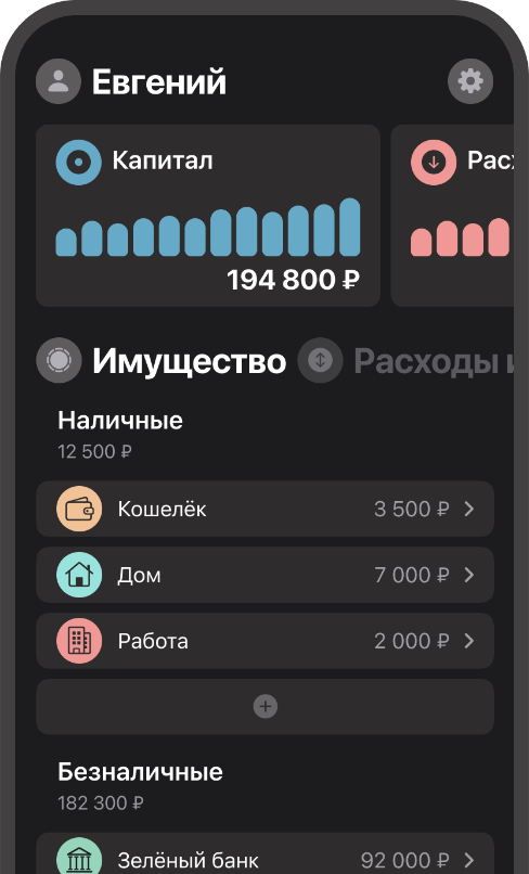 Создавайте и управляйте своими наличными средствами — кошельками, конвертами, копилками. Контролируйте баланс, группируйте по местам хранения и следите за динамикой в реальном времени.