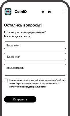 Мы открыты к диалогу и постоянно совершенствуем приложение. Делитесь своими идеями и отзывами — вместе мы делаем CoinIQ ещё лучше.